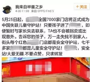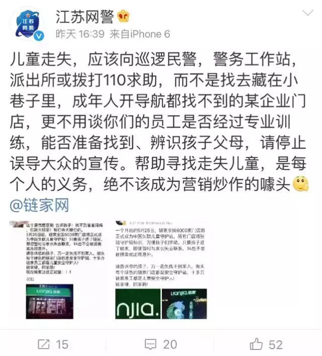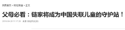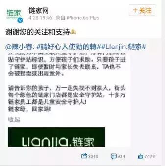 这两天,一则关于链家地产的消息在朋友圈里疯狂传播,该消息宣称:从5月25日起,链家全国6000家门店将成为中国“失联儿童守护站”,请家长告诉孩子,只要与家人走失,就去链家,那里的员工会保护孩子,帮孩子回家……