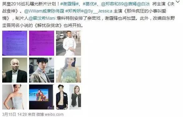 当然,开撕的原因不是因为这些,事情的来龙去脉还要从英皇公布了2016巡礼新片说起。