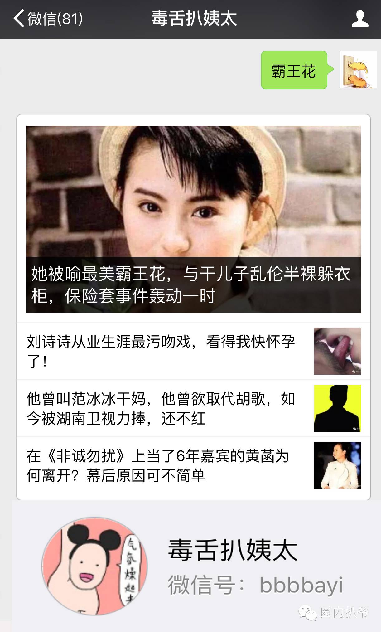 看扒爷一个人讲八卦腻不?来关注扒爷CP,毒舌扒姨太吧!一手明星猛料,时尚小公举,最浪毒舌妇就是她! 关注后回复关键词:【霸王花】 就有猛料哦!