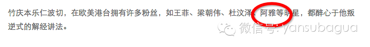 里面提到阿雅和王菲、梁朝伟等一样都是他的粉丝