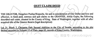 2013年,疑似活佛先生将房子赠与上一任妻子