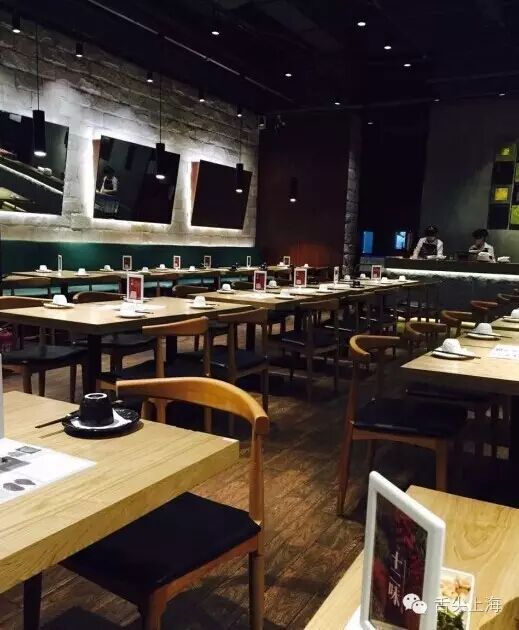 装修是仿古的中式风格,深色系搭配比较昏暗的灯光,瞬间提升逼格。餐具桌椅,都很厚重的良好质感