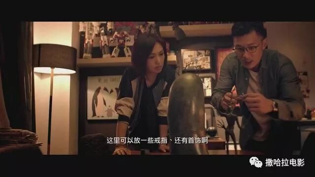 志明与春娇躲在楼梯后面,志明手上的烟不小心烫到了春娇的脖子(不是吻痕啦)