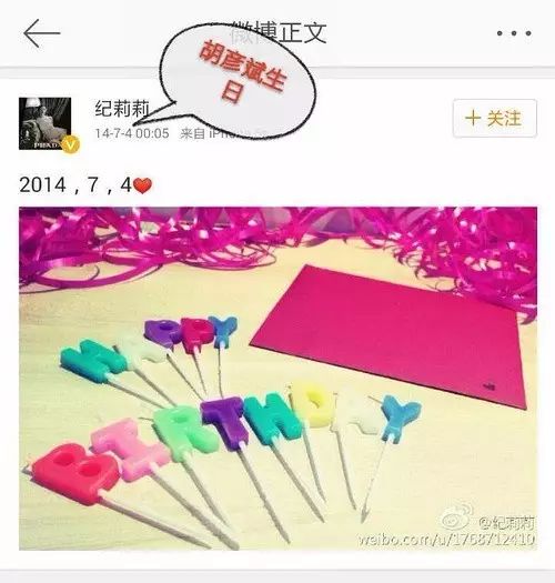 然而胡彦斌前女友纪莉莉2014年7月微博祝胡彦斌生日快乐;