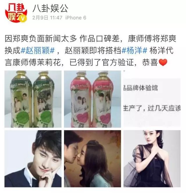 PS:郑爽之前和杨洋的饮料广告,被赵丽颖取代了。取代原因各种说法都有,有说郑爽负面新闻太多,作品口碑差的,也有说郑爽方主动选择不再续约。