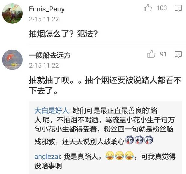 真是呵呵哒了,你们说粉丝是不是很奇怪,抽烟很正常你们为什么偏偏打死不承认呢,这又不是什么坏事。