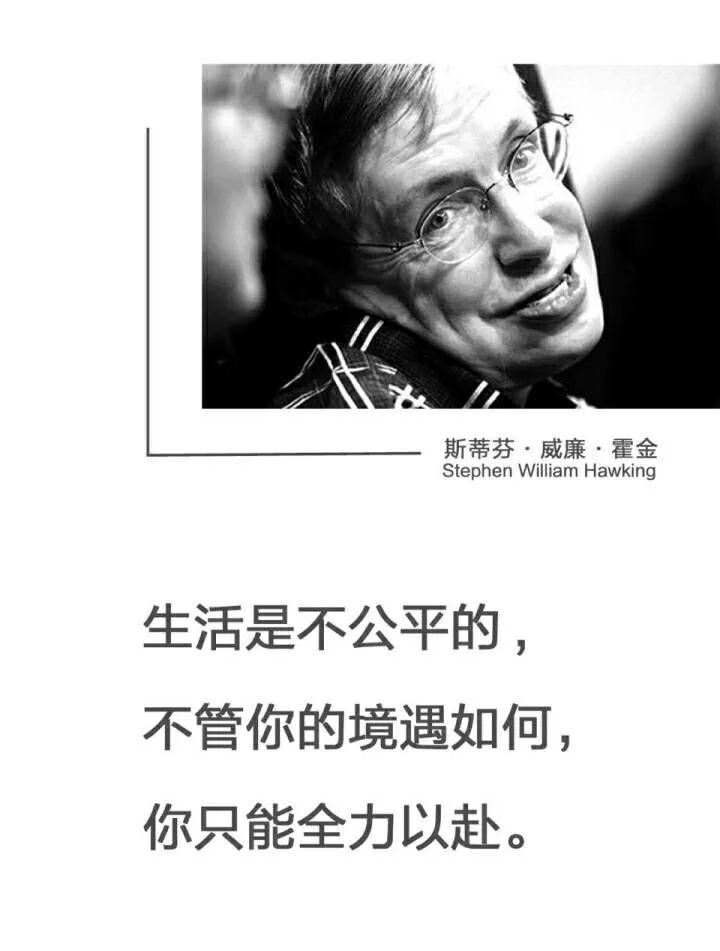 生活对霍金并不公平,甚至是极其残忍的。但是霍金并没有抱怨,也没有颓唐,而是用非凡的执着与生命博弈,在时间流逝的缝隙中把握活着的意义。相比之下,我们拥有健全的四肢,安逸的生活,又有什么理由随意挥霍青春,无所事事呢?