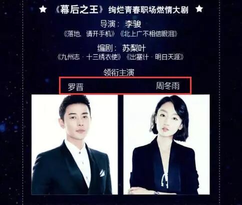 这部剧原本的官方设定也没公开是男主还是女主,但初步定的时候是把罗晋放在前面的,但是官宣的时候变成了周冬雨一番,结果罗晋粉丝就很不爽,一个劲在评论里撕。