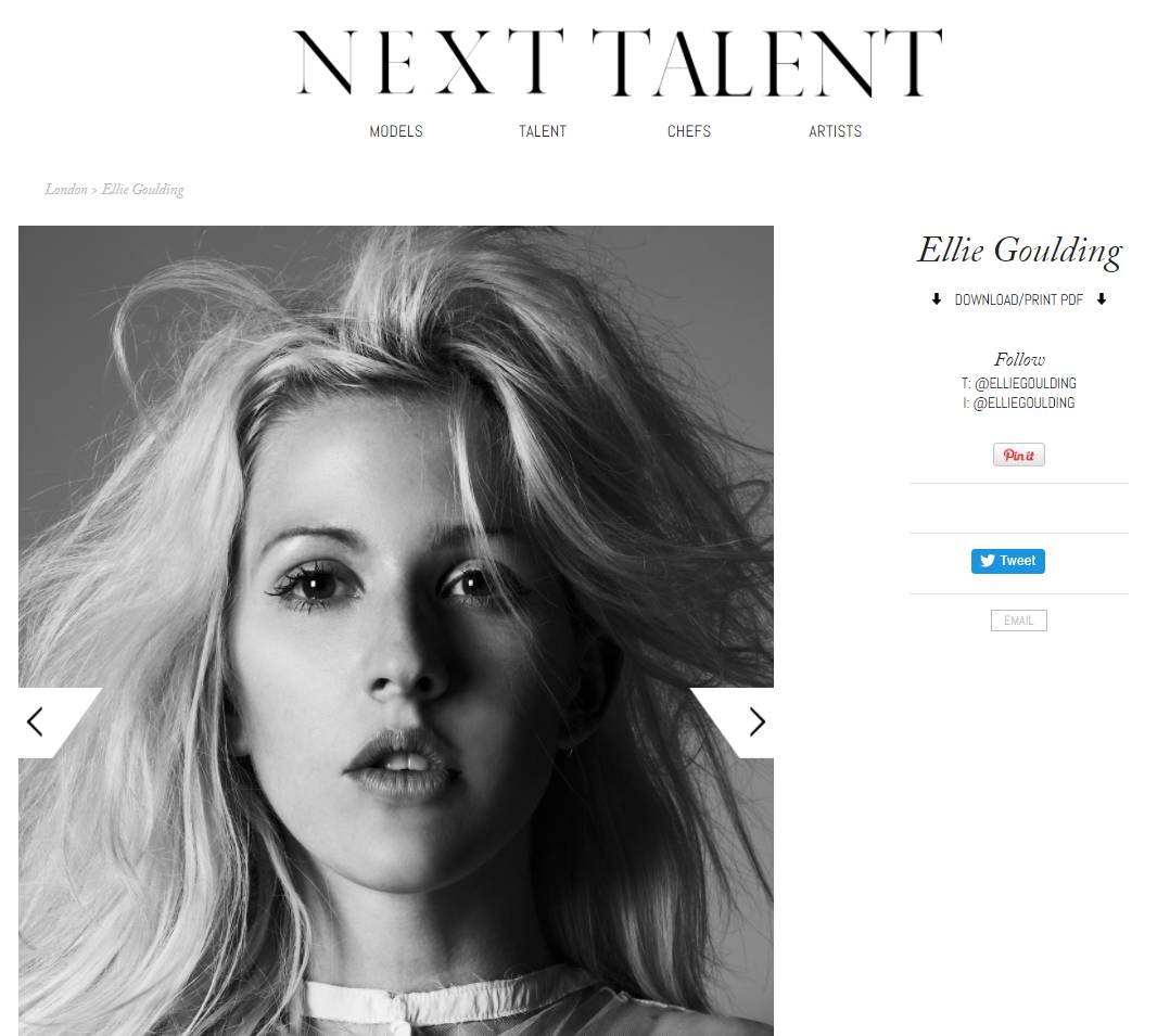 Lana Del Rey & Ellie Goulding 就签约了顶级模特公司Next Model Management 公司.. 并且同时签约Next 旗下六地的公司,伦敦,洛杉矶,纽约,米兰,巴黎,迈阿密成为专业模特。