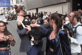 就好像是发现了女明星更好欺负一样,恶心的操作一波接一波。2016年,他在米兰时装周大秀结束后,偷溜到模特gigi的身后,双手从后面环抱住gigi,将gigi高高地抱离地面。