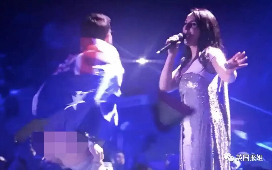 在欧洲歌曲大赛上,对着女歌手在镜头前脱裤子
