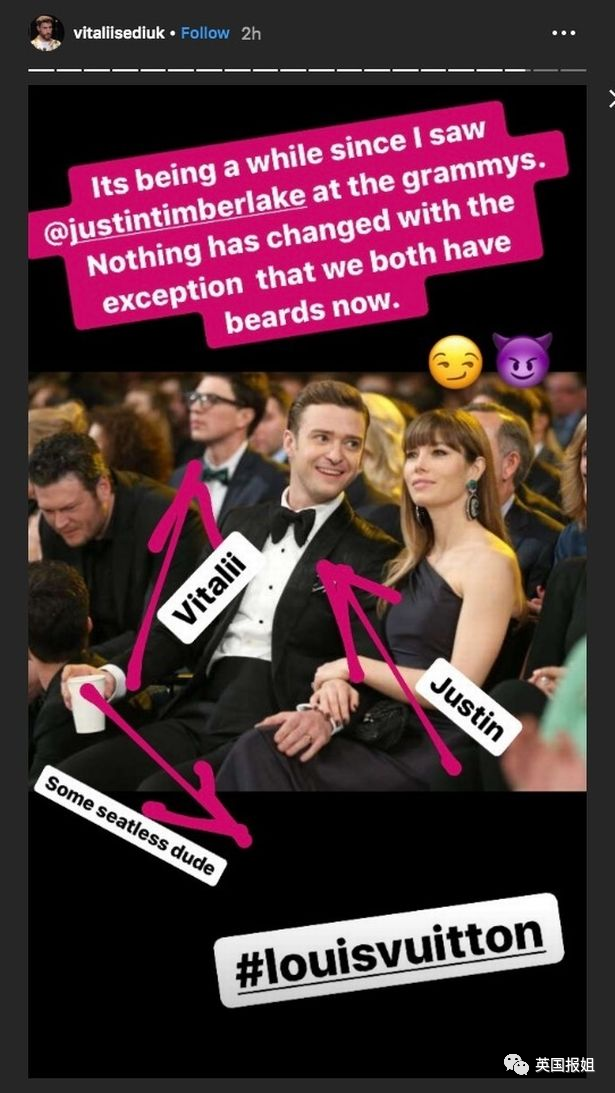 他最近一次骚扰行为是在去年巴黎时装周的LV大秀上,抱住了贾老板Justin Timberlake的腿。