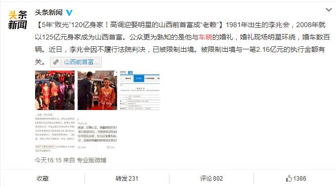 而使她上热搜的直接原因,就是她的前夫,山西前首富李兆会,因为破产后不履行法院判决。