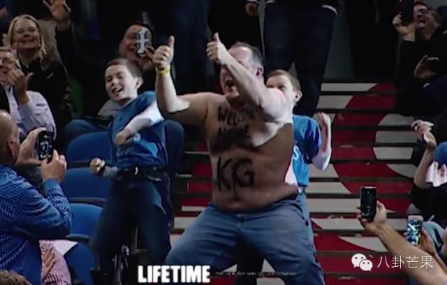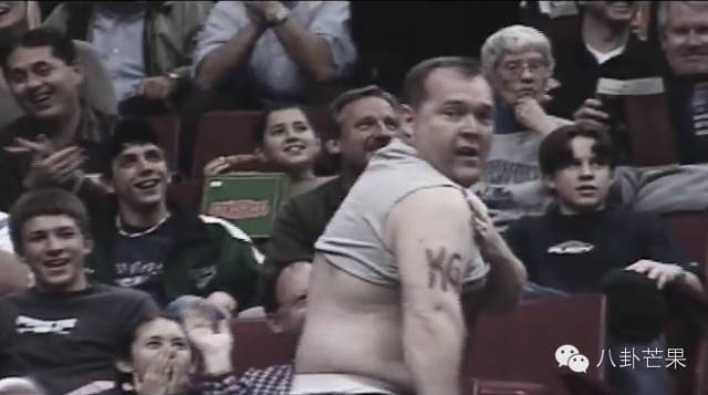 2003年,在明尼苏达森林狼队的主场球馆,一个疯狂喜欢球员加内特(KG)的球迷兴奋脱衣舞动,为了他的KG!