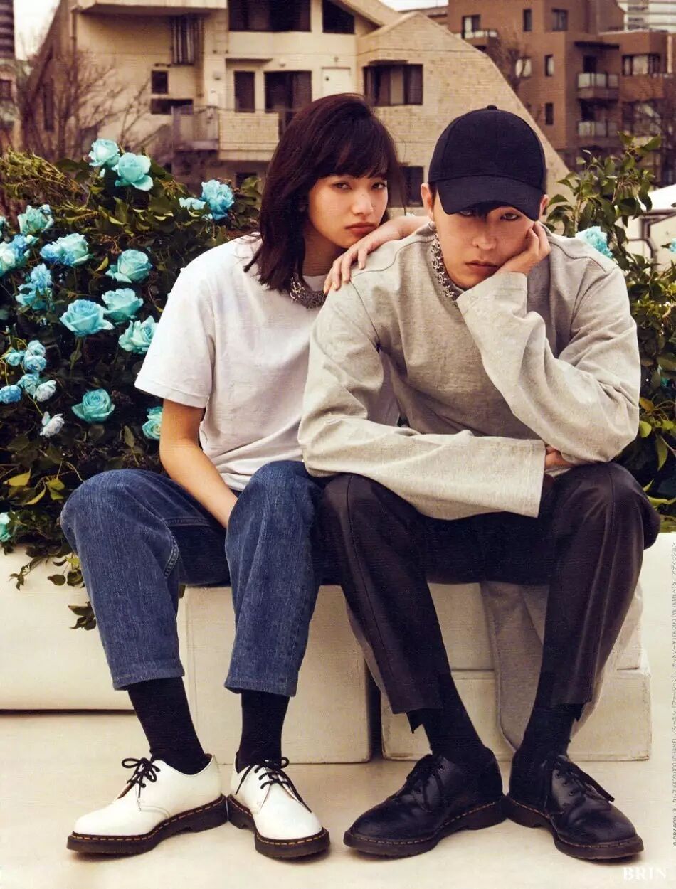 对,是 Dr. Martens ,尤其是这双,流淌的牛奶图案,鸳鸯黑白色,差点令人认不出是 Dr. Martens 的 Dr. Martens 。杂志里,G-DRAGON 用皮裤、牛仔裤和裙装,轻轻地把 Dr. Martens 演绎了一下。