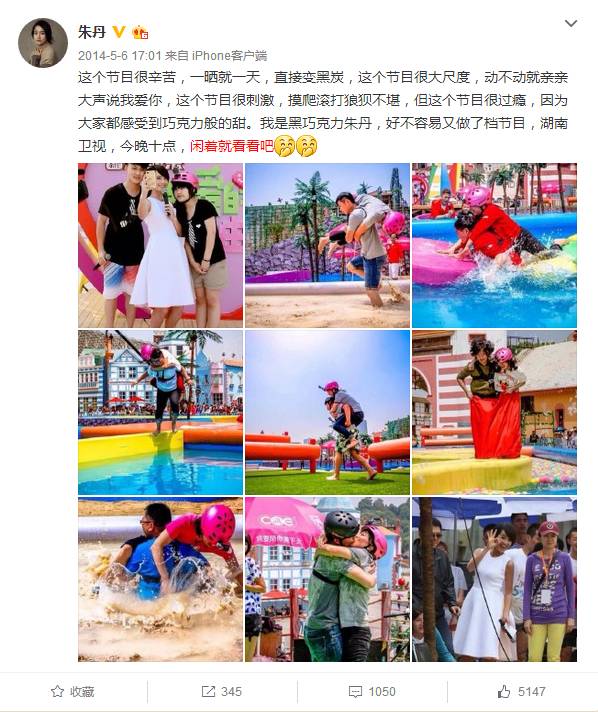 所以在湖南台的两年时间里,朱丹只能擦边主持一档三线主持人才会去做的体育竞技类节目《加油吧,亲爱的》。尽管如此,朱丹依然没有改变口直心快的性格,在微博中没有卖力的去宣传,一句“闲的时候去看看”的敷衍表达,道出了在湖南台郁郁不得志的心酸。