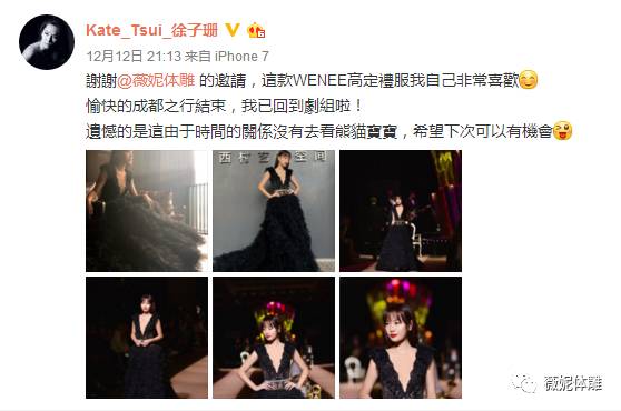 她还在微博开心地表示: 自己非常喜欢WENĒE的这件高定礼服!