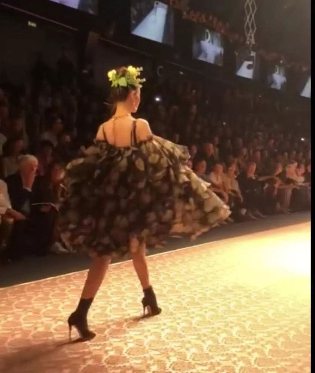 去年走秀,热巴还是个新人,不但是演艺界的新人,还是时装周的新人,当时的她有点胆怯,但现在的她已经有足够的经验hold住全场。