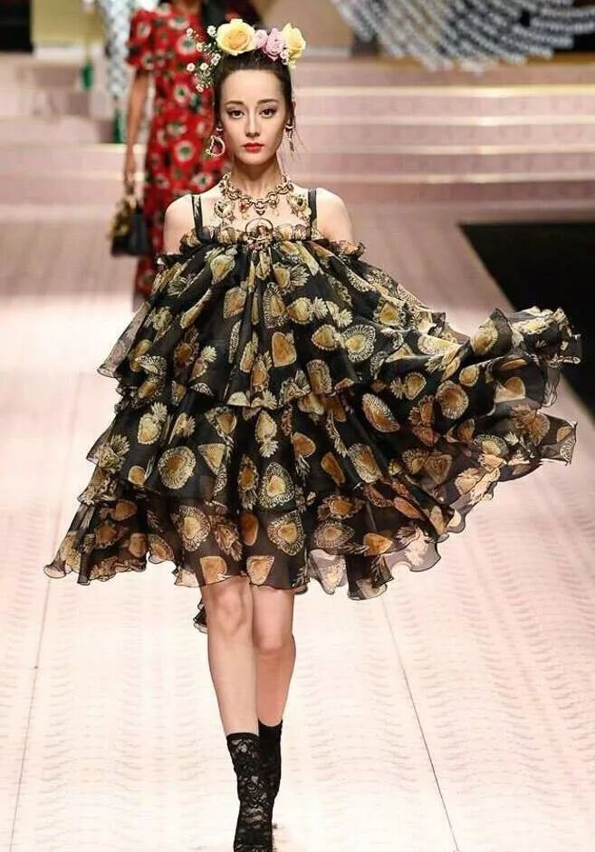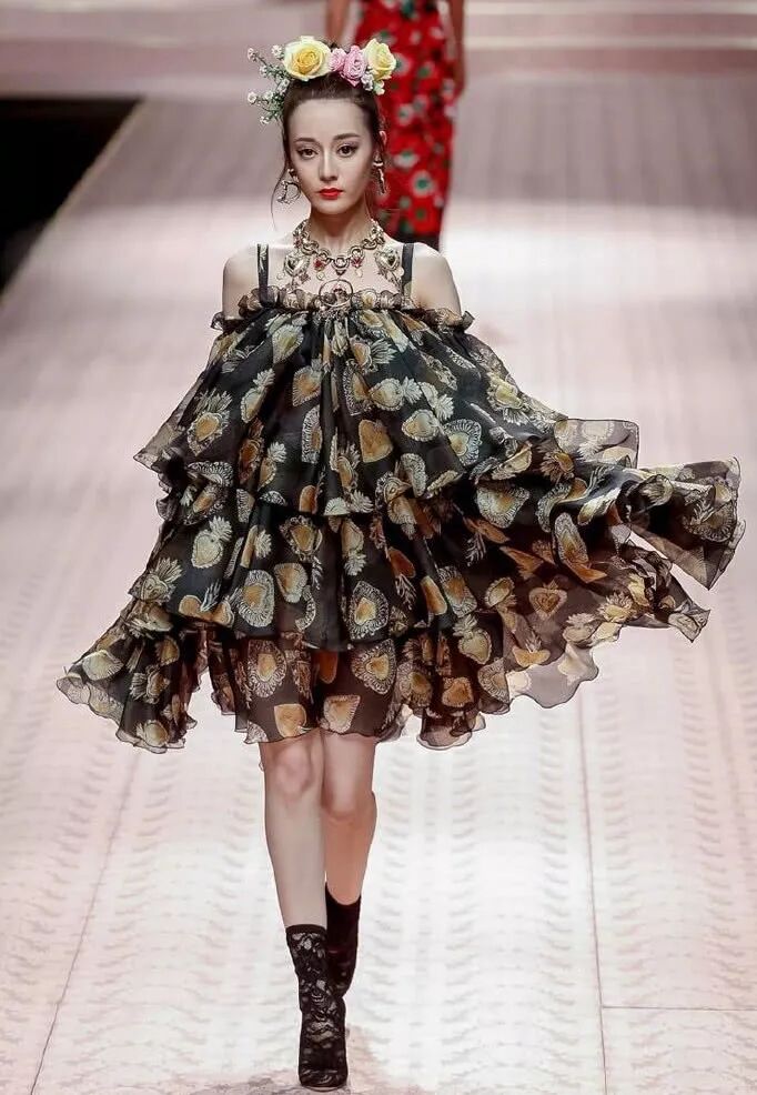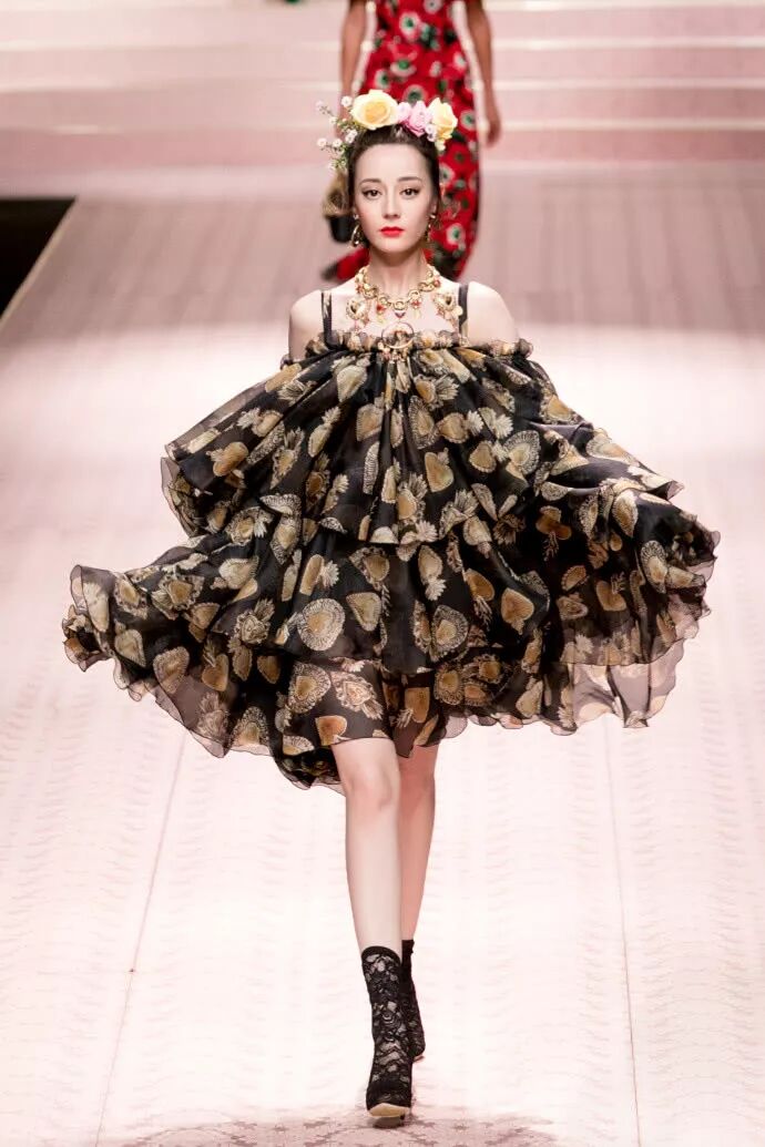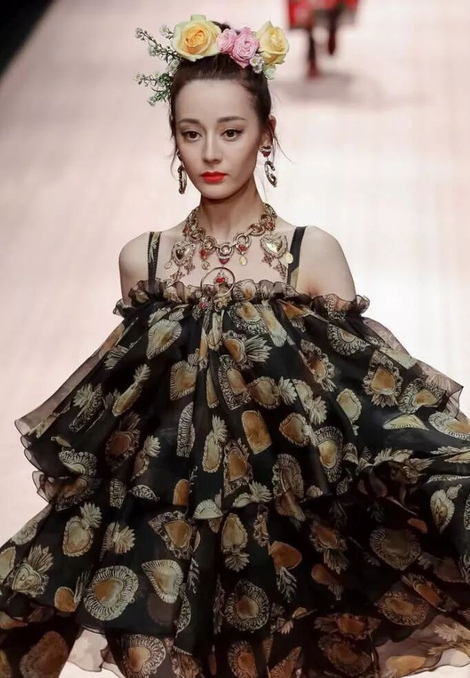 虽然迪丽热巴的身高只有168cm,但在T台上的她,气场却有一米八。