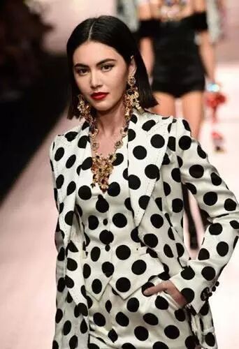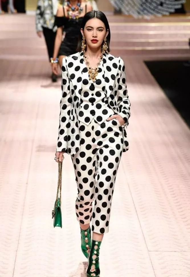 本来就是模特出身的她,真的是气场超级强大,猫步走得很专业,台风也十分的强劲。一身波点套装,帅气而又吸人眼球,配上她的气势,真的有种舍我其谁的感觉。