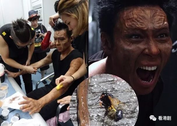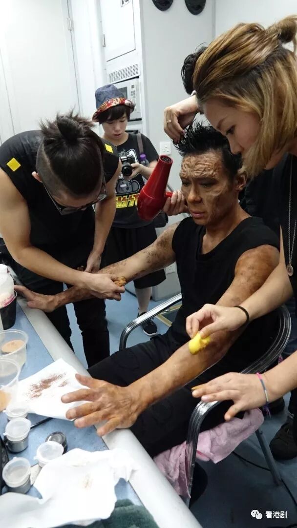安仔说:“其实我都几忍得吓,因为嗰啲搽上面嘅胶水,会令皮肤有针拮嘅感觉,但皮肉嘅痛,远不及化妆车冇冷气,我同特技化妆师宁愿挨蚊叮,都要趁未入黑,走到路边化妆,司机大哥亦趁呢个时间,将冷气成功维修好。”入行至今,安仔还是头一次接触特技化妆,尤其见到自己变成“狂兽”的模样,觉得辛苦4小时上妆也是值得:“除咗面部要化妆,我嘅颈、手,所有见到肉嘅地方都要化妆,上妆需时,落妆同样花时间,