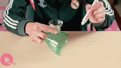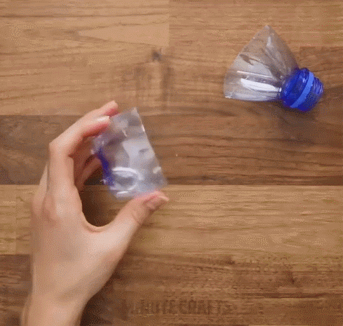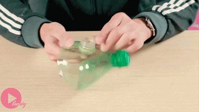 只需将瓶口部位切掉,然后将切口打磨平整,对准加热后的电熨斗,烫上1秒钟,让瓶口受热变形,自然会内收成窄口形状。这样就能用来收纳你的各类化妆工具啦。