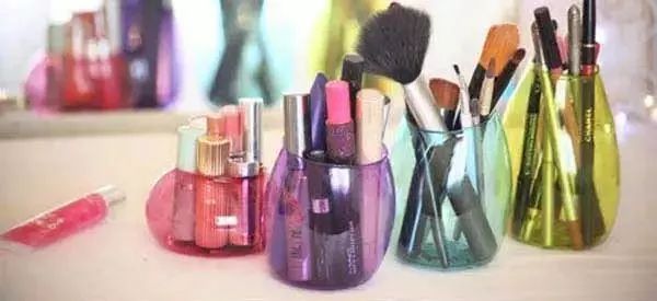 女孩子们的梳妆台,如果不好好收纳整理,一定像灾难现场。喝完果汁、饮料的各种好看塑料瓶,扔了太可惜,随手改造成收纳盒吧