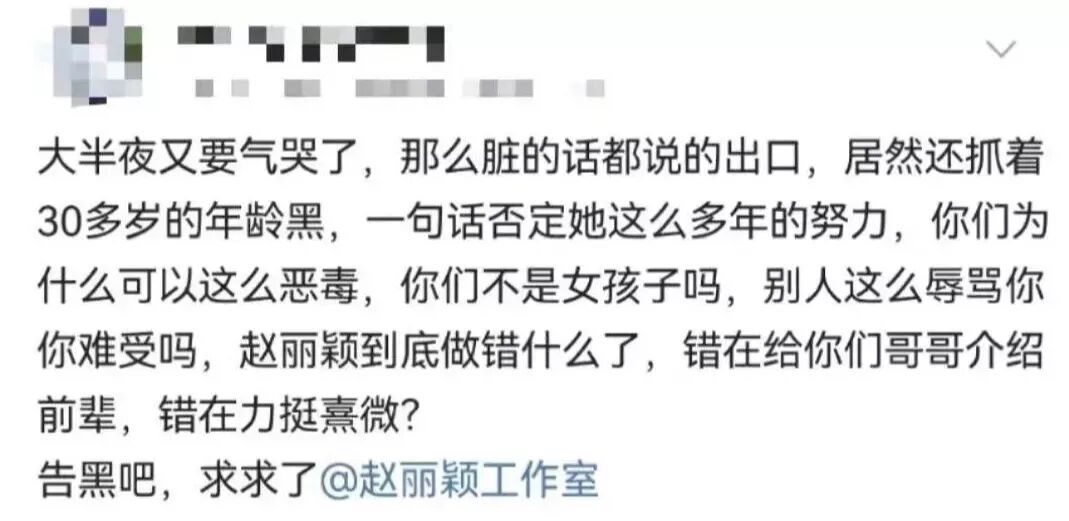 于是,就有了咱们前面提到过的,部分赵丽颖粉丝辱骂、造谣王一博。