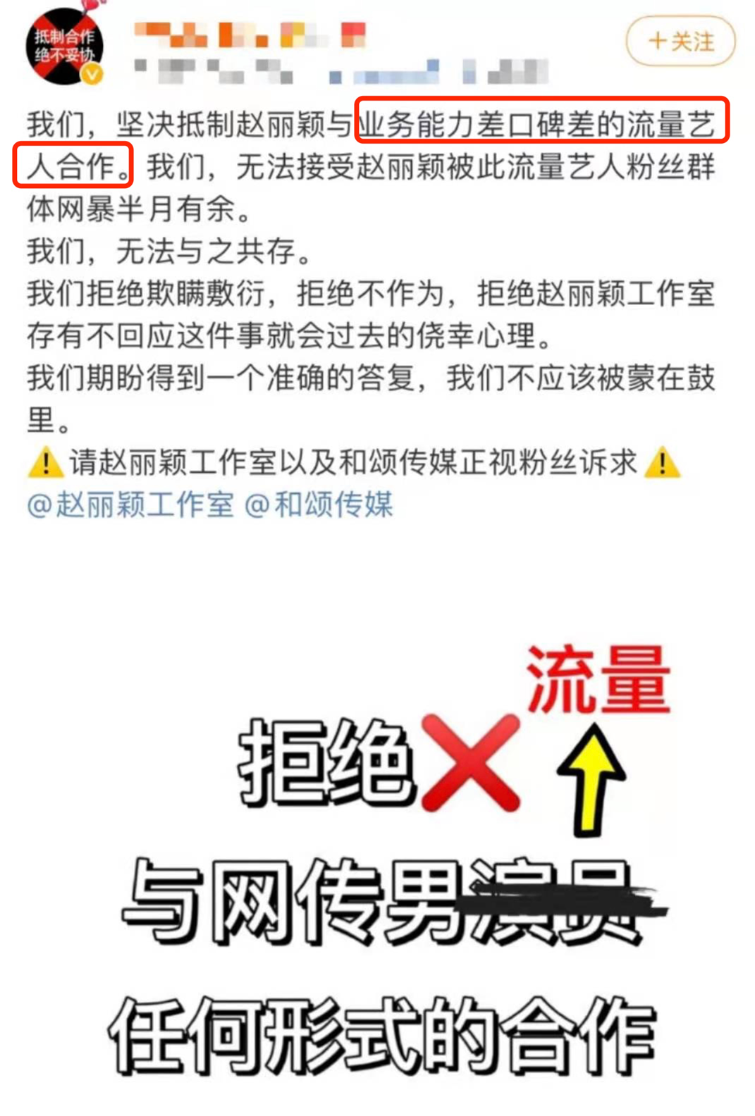 让人没想到的是,粉丝、站子相继以“罢工”的方式表达诉求以后,“赵丽颖全球粉丝后援会”也发了篇长文,进行了表态:联合声明、坚决抵制