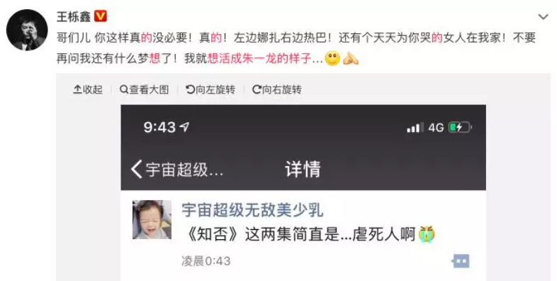 你看王栎鑫心态就很好,表示朱一龙这左边娜扎右边热巴,他家里还有个天天为你哭的女人,想活成朱一龙的样子。