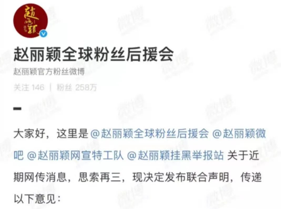 “赵丽颖全球粉丝后援会”也不例外。