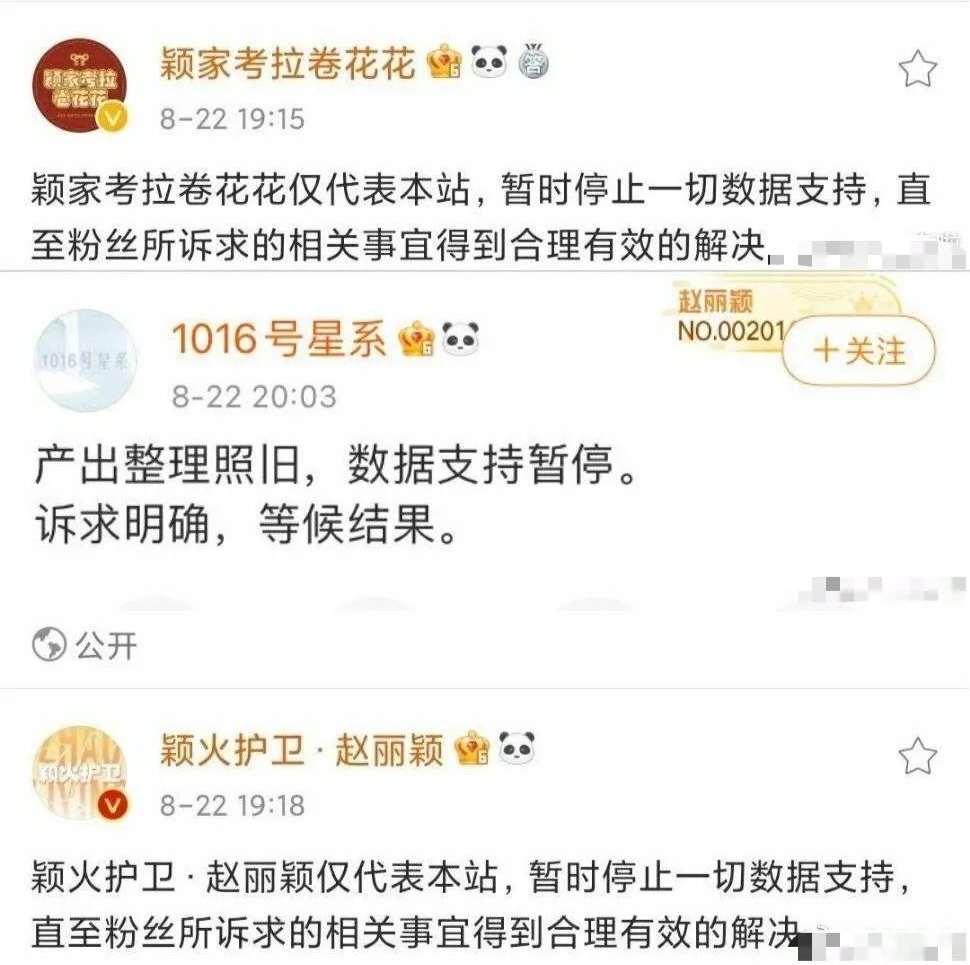 在粉丝表态之后,赵丽颖的各个站子也开始逐一发布声明:停止一切数据支持,直到粉丝的诉求得到解决↓