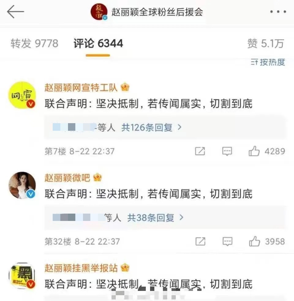 就在在赵丽颖、王一博粉丝的评论区大战展开以后……