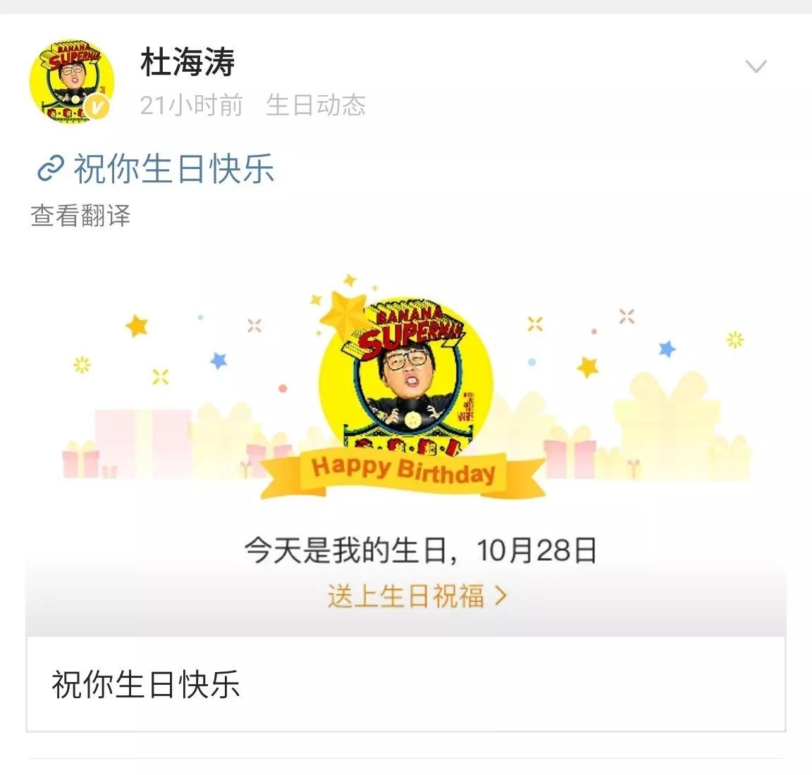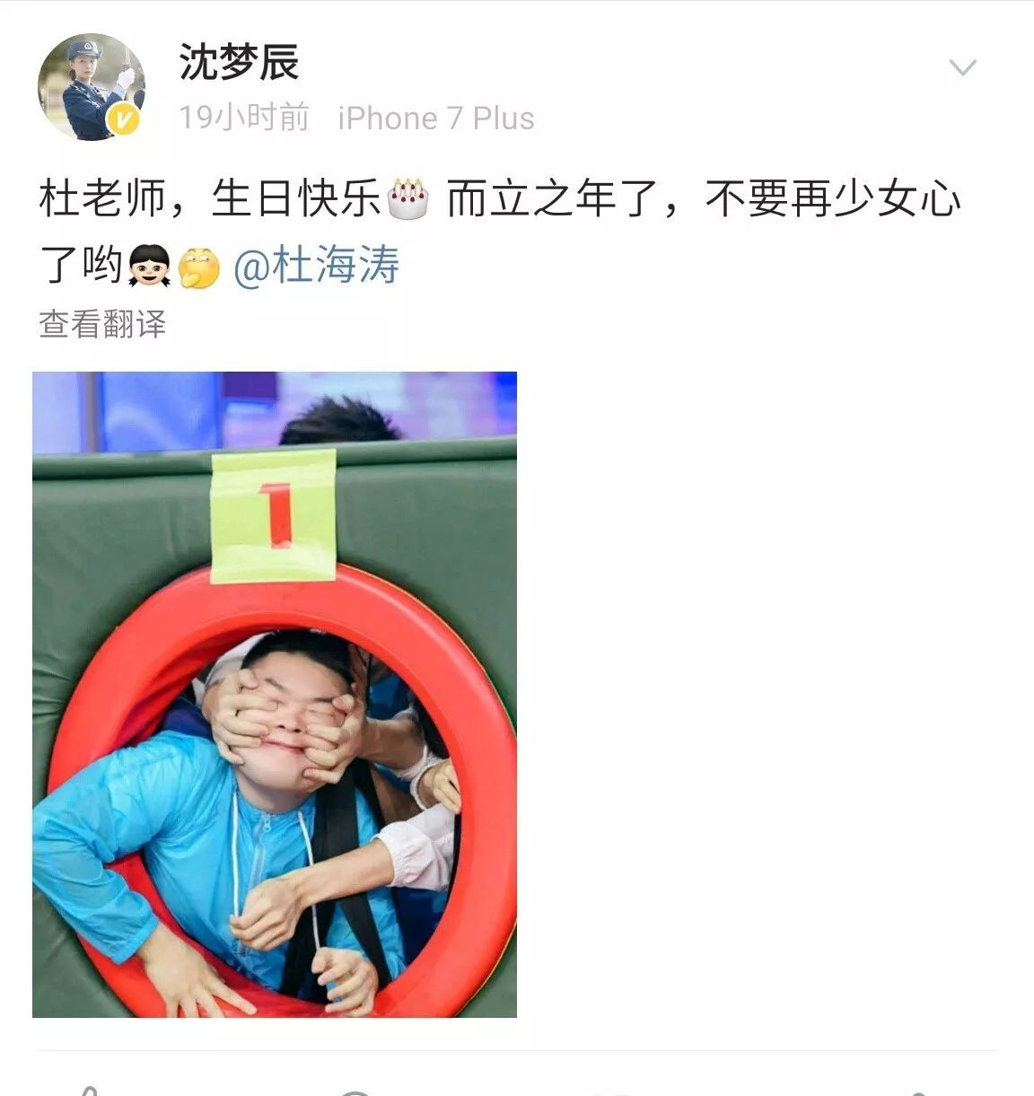 当然了所有人都送上了祝福而做为女朋友的沈梦辰也不例外啦!不过这条祝福微博却发了两次!因为第一次沈梦辰打了个错别字!不过后来秒删改了回来。