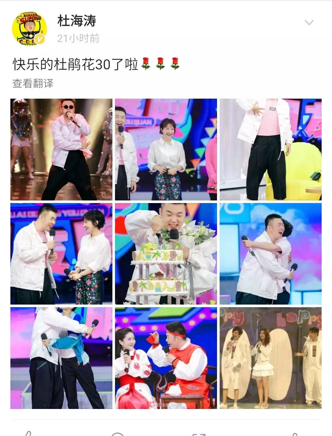 而海涛自己也po出了“家族”合影,并且再次“强调”他这朵“杜鹃花”已经30岁啦!