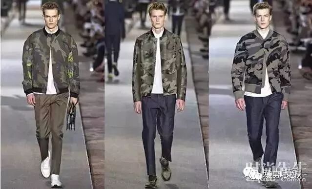 迷彩服最早出现在二战期间,本意是为了保护士兵,使其色彩与周围环境保持一致而不被敌方发现。二战结束后,迷彩元素迅速从战场转移到时装圈,成为男性酷帅硬朗的代名词。