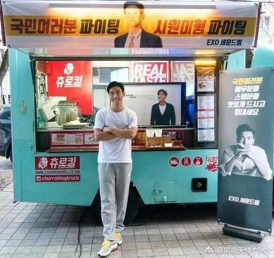 EXO成员吴世勋为正在拍摄KBS月火剧《各位国民》的同门师哥Super Junior崔始源送上零食车。崔始源今日通过个人INS晒出了世勋送来片场的零食车,并写道“世勋啊,谢谢你,一起幸福吧”,零食车的横幅上写着“各位国民加油,始源哥加油。EXO世勋上”。