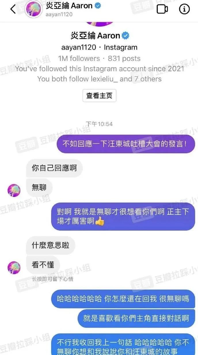 随着节目播出,有人看热闹不嫌事儿大,专门跑到炎亚纶那里让人家回应。
