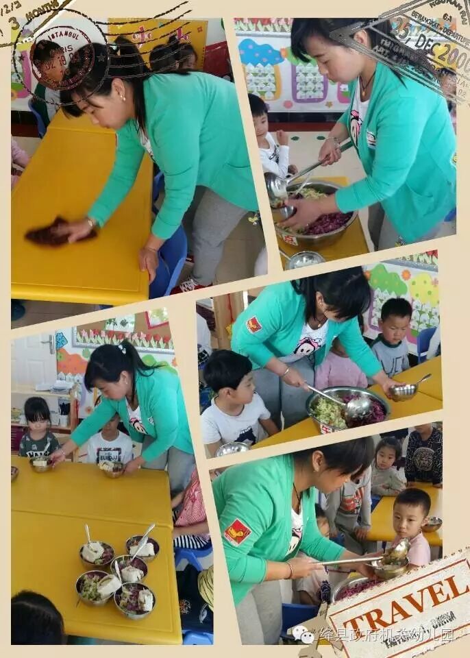 她坚持做好饭前饭后的清洁消毒工作,每天为幼儿盛适量的饭菜,使幼儿吃饭安全有序。