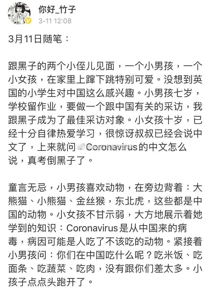 事情起因是前两天,博主“你好竹子”因为微博发的不当言论,被网友骂上了热搜。