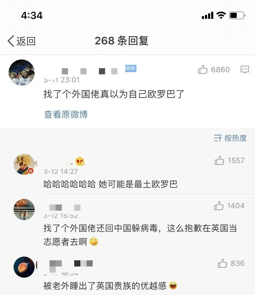 有人因为她嫁了个英国人,说她“被老外睡出了英国贵族的优越感”;