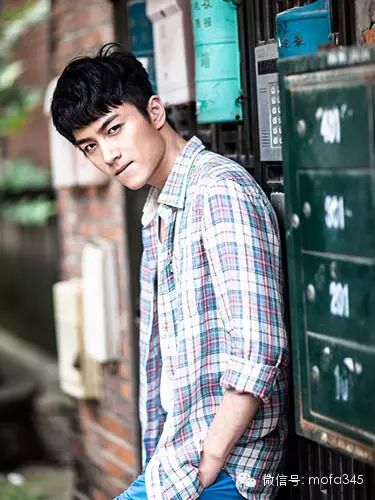 陈晓短发发型五:黑色清爽短发,干净利落,身穿格子衫,充满青春怀旧风。