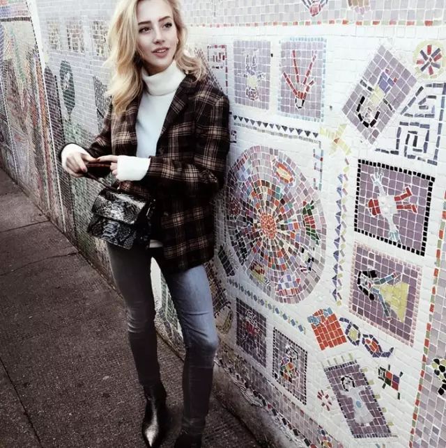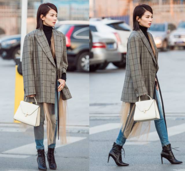格纹西服外套的款式颜色有很多种,最经典富有质感的当属灰色与咖色这两种色系,更能打造出优雅复古的感觉。