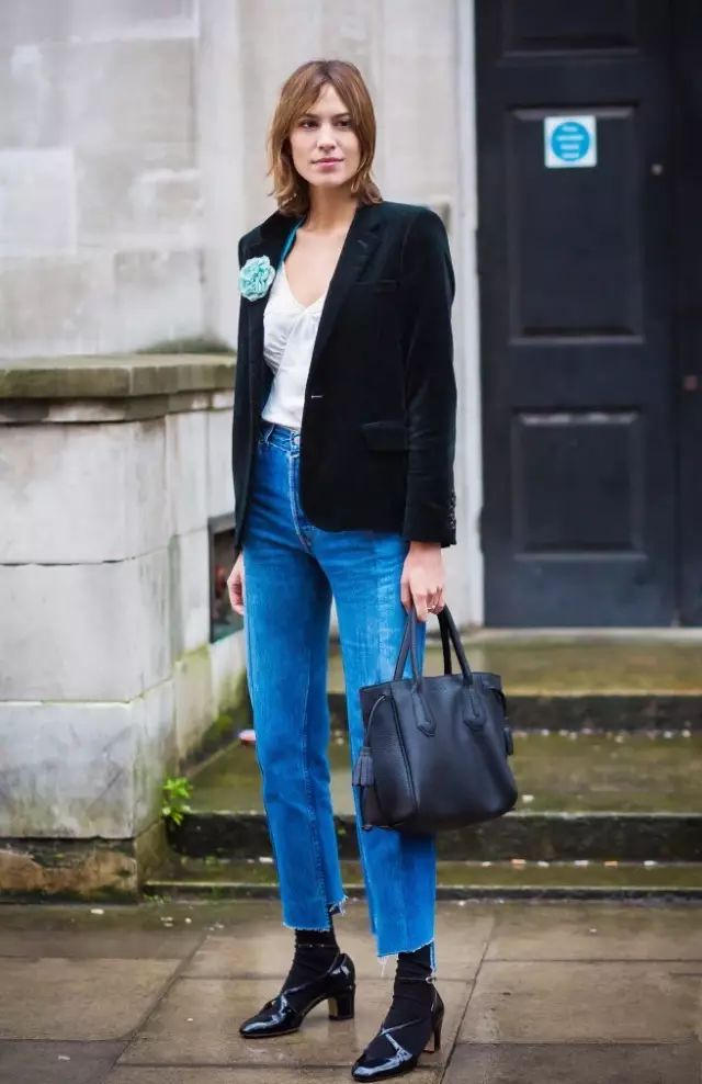 艾里珊·钟 (Alexa Chung) 穿牛仔裤搭配西装
