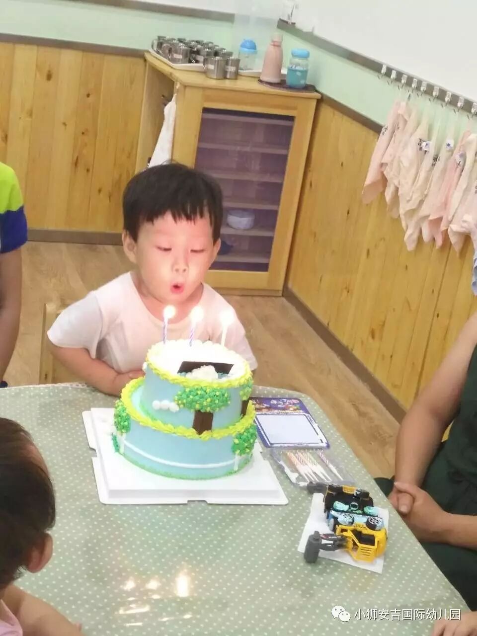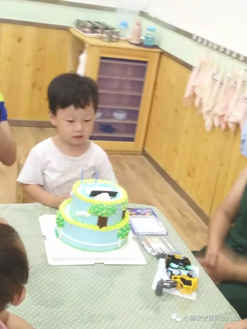 2、请我们今天的寿星桐桐宝贝来到老师的身边、告诉大家自己的年龄和生日日期。