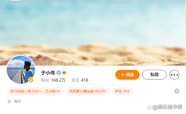如果你现在打开于小伟的微博主页,你会惊讶地发现,他的微博粉丝竟只有168万,相比其他当红明星的千万粉丝,属实是有点少了。不过这恰好能说明,于小伟从来没有为了出名,为了获得流量而刻意炒作自己,光凭这一点就值得我们为他竖起大拇指,因为这种优秀的品质,在当今的娱乐圈中是很难得的。