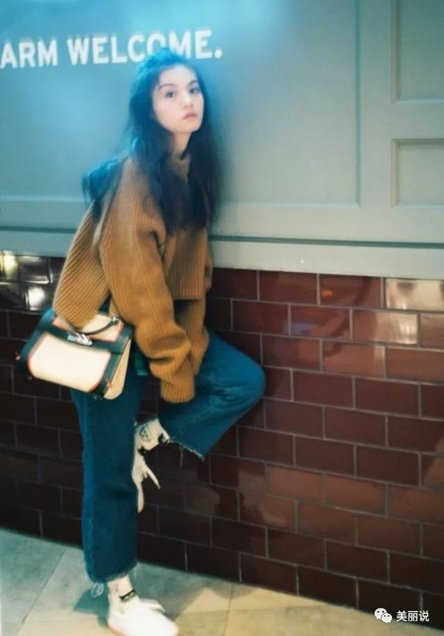 关晓彤同款当然是少女款啦,叠搭在酷酷的飞行员夹克下,也藏不住少女味。