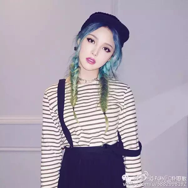 而一直都是彩色头发爱好的Pony最近也在微博大方分享自己染的新发色——当然还是彩色的,而且是非常大胆的蓝色+绿色的渐变发色。