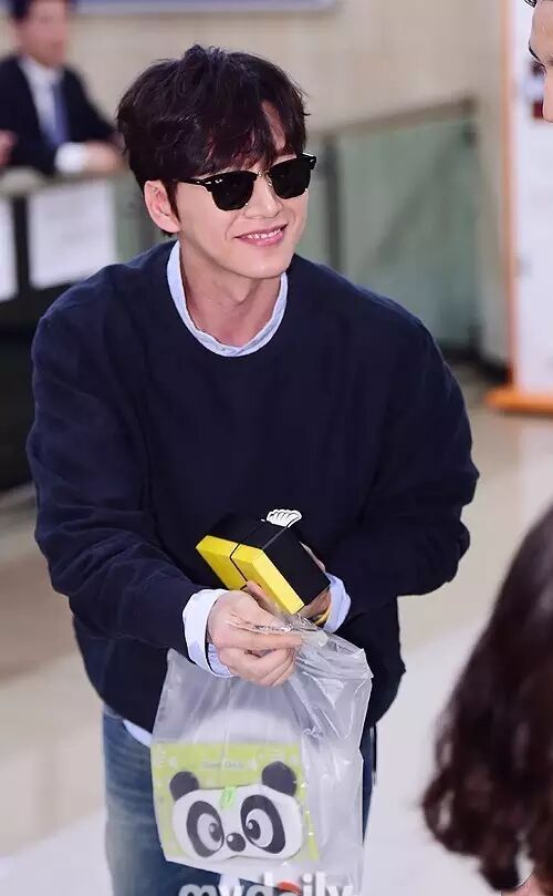 14日朴海镇结束中国行程后经由金浦机场返回韩国.朴海镇不时与等候在机场的粉丝们互动,展现暖男形象.更加亲和帅气