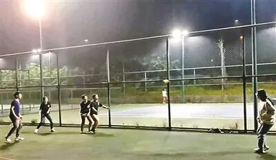 夜に「お手玉の中当て」遊びをする南京航空航天大学の学生たち。